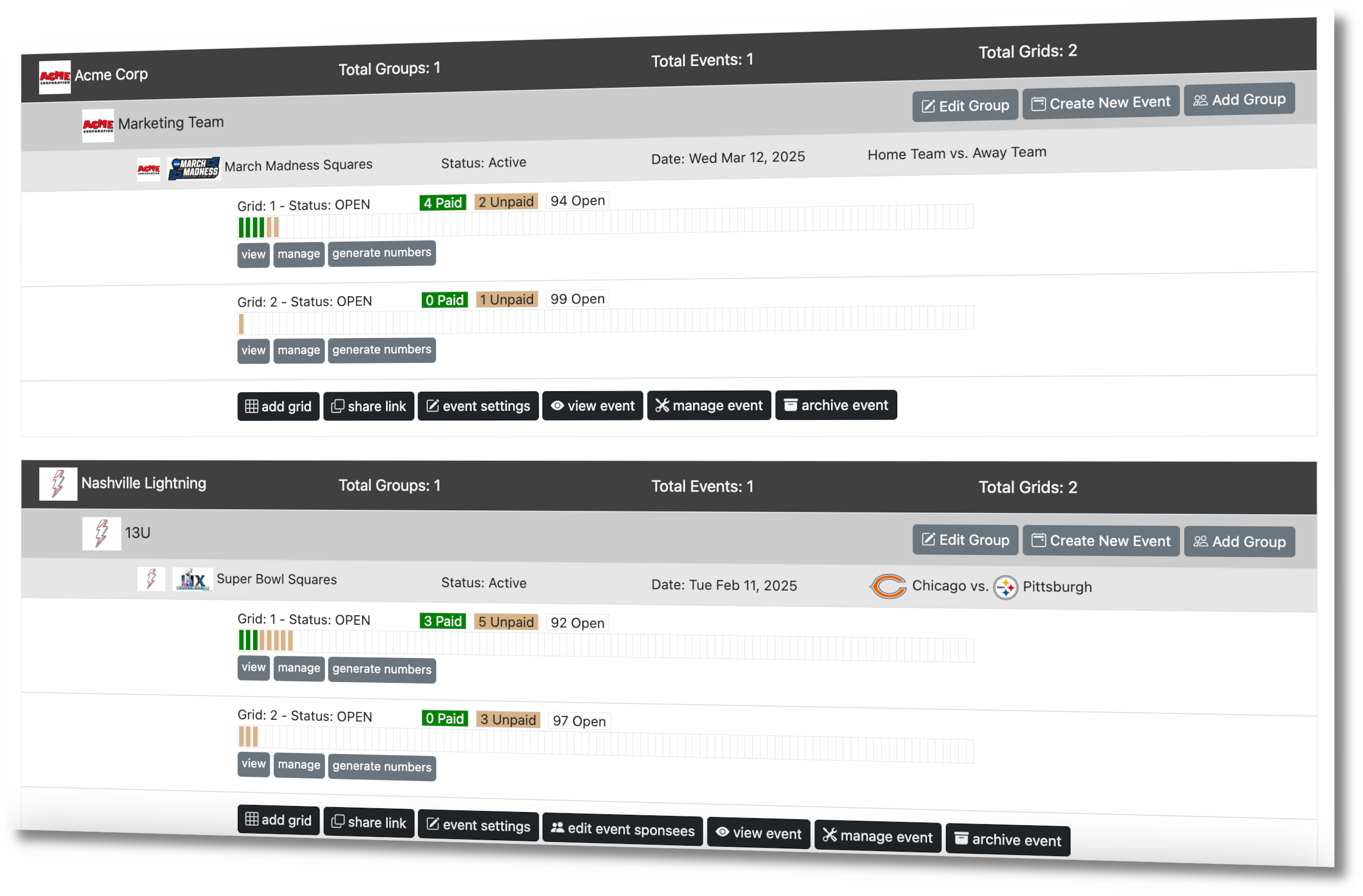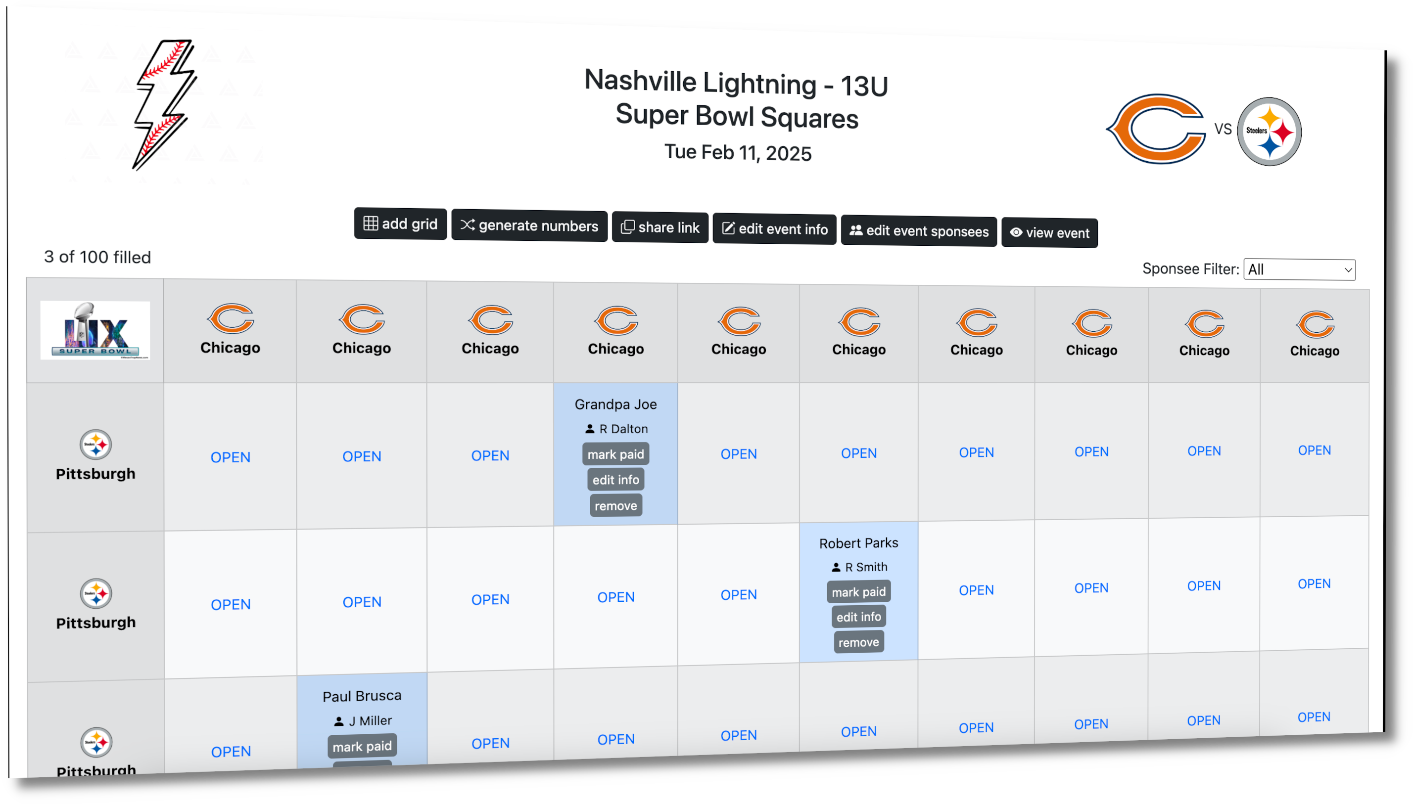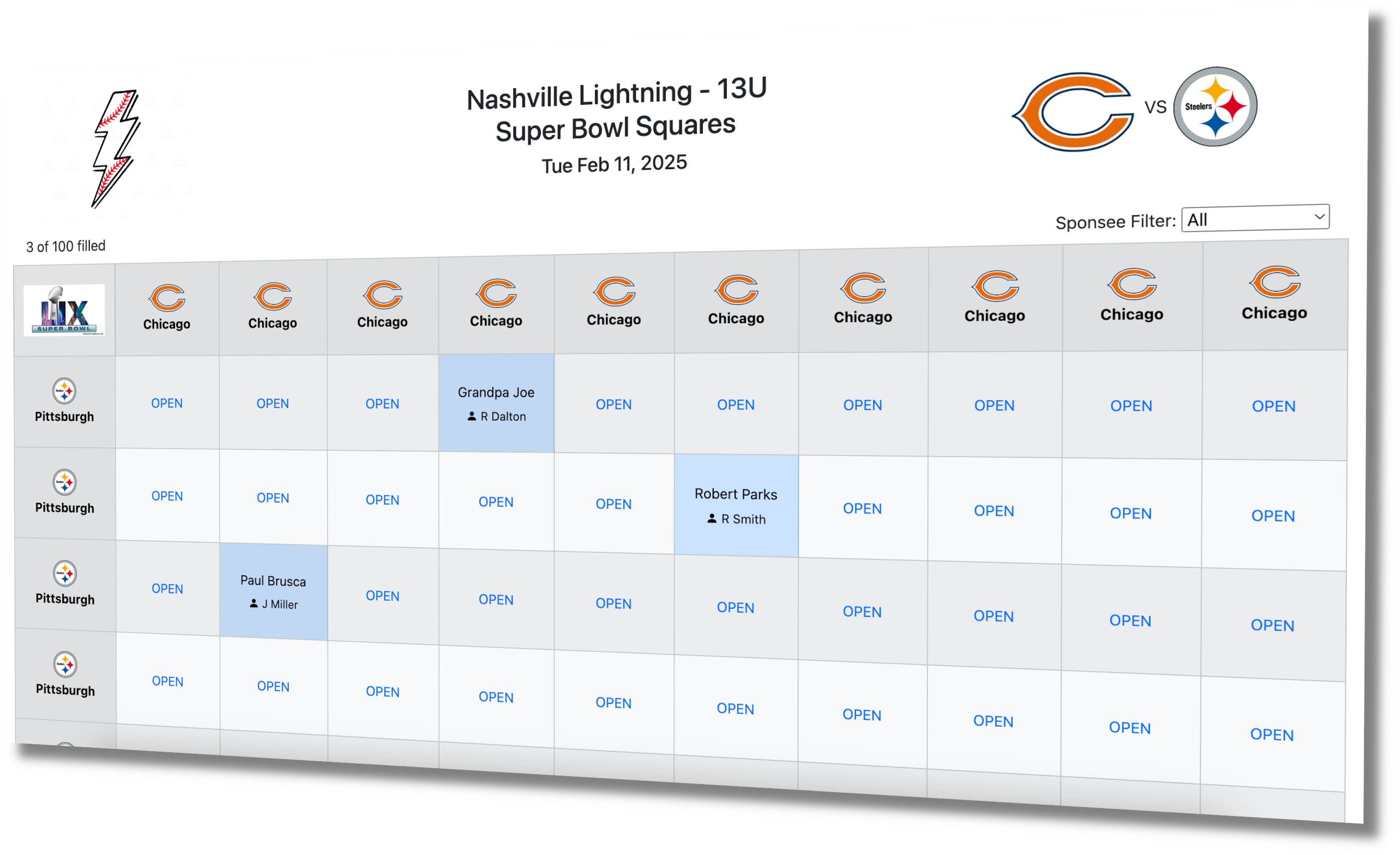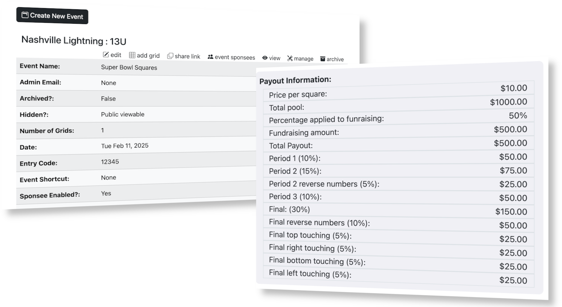 "Sharing scores and winners by quarter on the site so people can watch results during the game is awesome for the participants!"