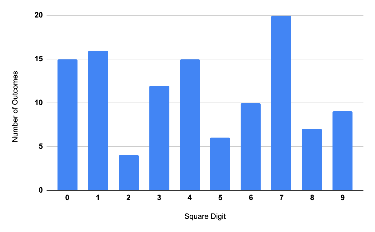There are a notable amount of statistics on the Internet around football squares (or super bowl squares). The ones that matter the most are below and provide some of the odds around final scores as well as frequency of numbers getting 'hit' the most.
